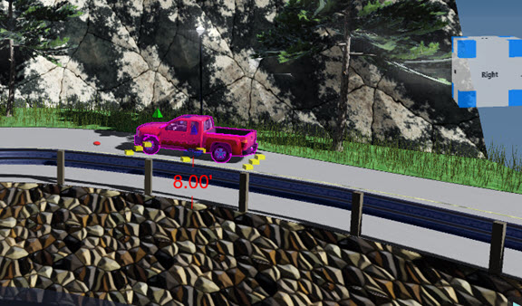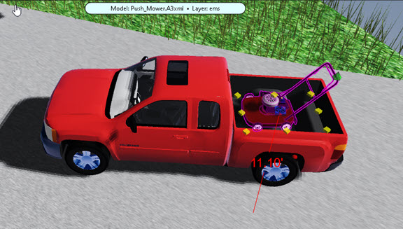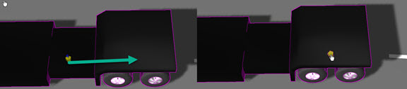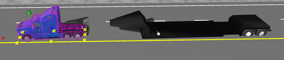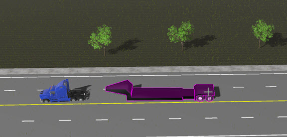 With the trailer selected, position the drawing to a top down view, and drag the yellow grip to the center of the rear axle on the trailer. This helps the vehicle and trailer as they move along the animation path.