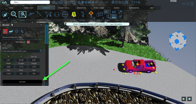 Select Animate from the tool panel to create an animation for the articulated group of models.