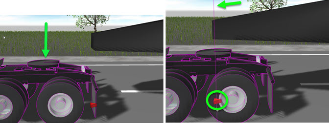 Click the trailer, and drag the blue grip to the hitch point you assigned for the vehicle.
