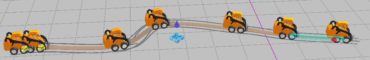 Tracks are the vehicle tire lines along the animation path. Skid refers to marks left on the ground. Use TrackWidth to widen or narrow the tracks to match the vehicle. Apply skid marks on animation path segments, and customize them with color, track thickness, wheelbase, track width and pivot offset parameters. |