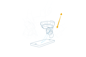 Touch the white surface with the ball probe and press the green Front button.
