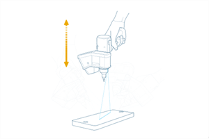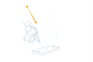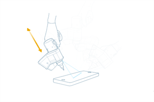 Press and hold the green Front button and move the LLP away from the plate along the 45° vertical angle while pointing to the center of the white surface. Keep moving until you are too far from the plate.