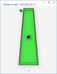 When the LLP is within the operating range, the center of the target displays as a small box in the Range Finder dialog box, see