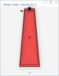 When the LLP is outside of the operating range, the target box moves to a side of the Range Finder dialog box and an arrow in the center of the dialog box points to the target box, see
