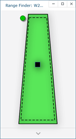 When the LLP is within the operating range, the center of the target displays as a small box in the Range Finder dialog box, see