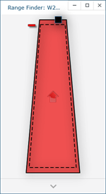 The FaroArm Manager software has a Range Finder dialog box. This dialog box graphically displays the probe-to-part distance and the area of the laser line that the camera is processing.