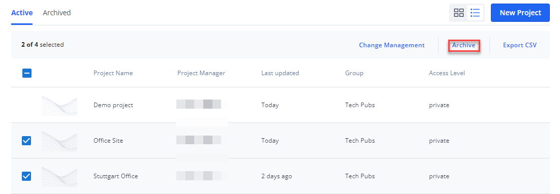 Confirm that you want to archive the project(s).
