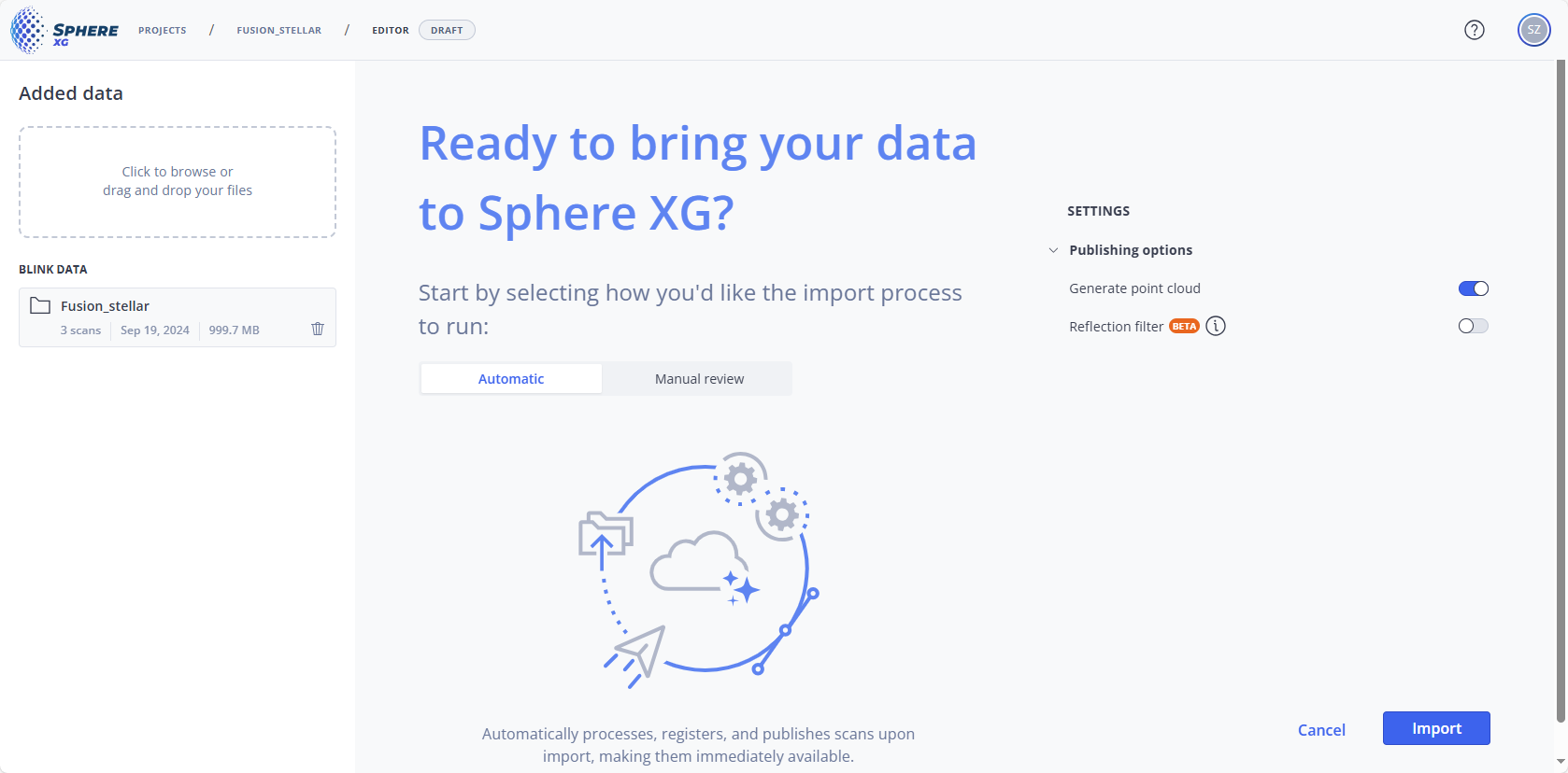 Click Open in Sphere XG to open the new project. The following page will be displayed.