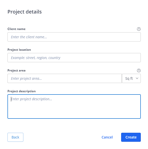 You can decide whether you want to start working on your project by adding a new area first or by importing scans. You can always add new areas and scans later.