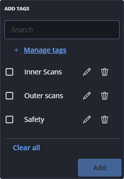 This option allows you to assign tags to one or more scans and waypoints.