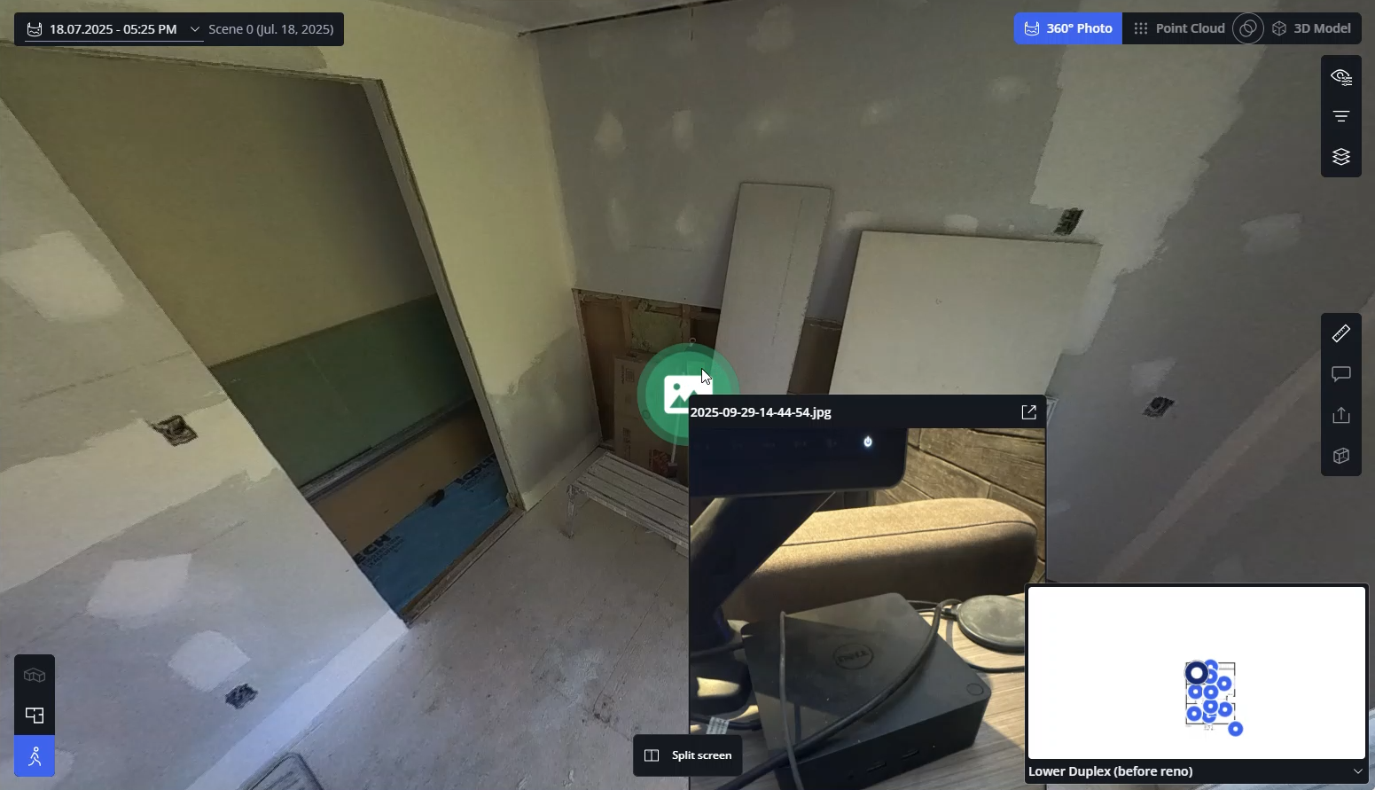 If a capture contains a 360° photo and a 2D photo, the entry in the dropdown will show the 2D photo as an annotation.