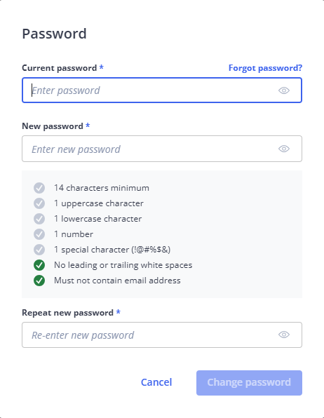 Note that you must sign out of Sphere XG after requesting the reset link.