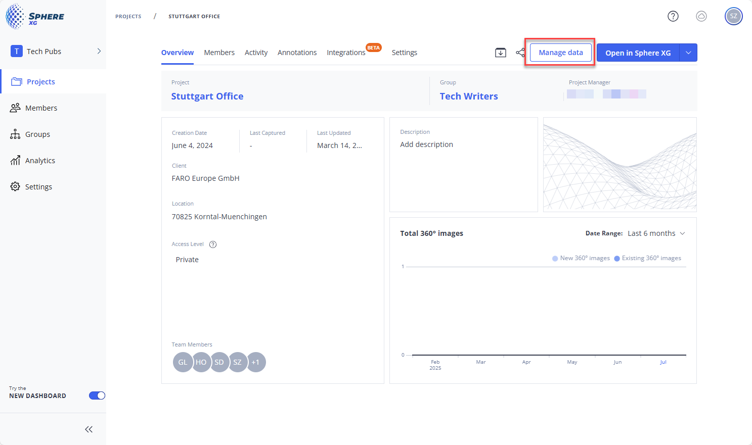 On the Sphere XG Dashboard, go to the Projects page.