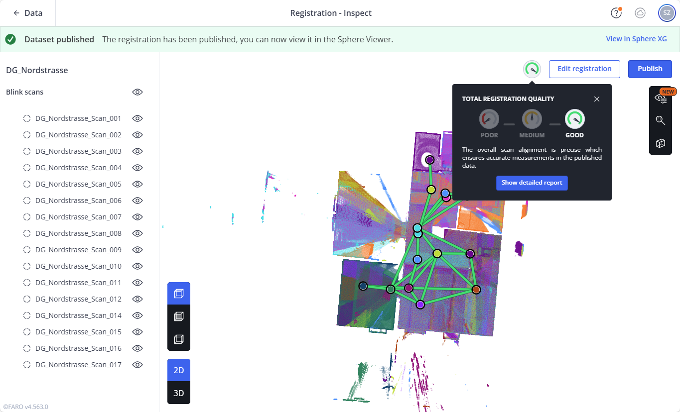 Good registration quality, i.e. the scan alignment is precise. In this case, you can publish the project.