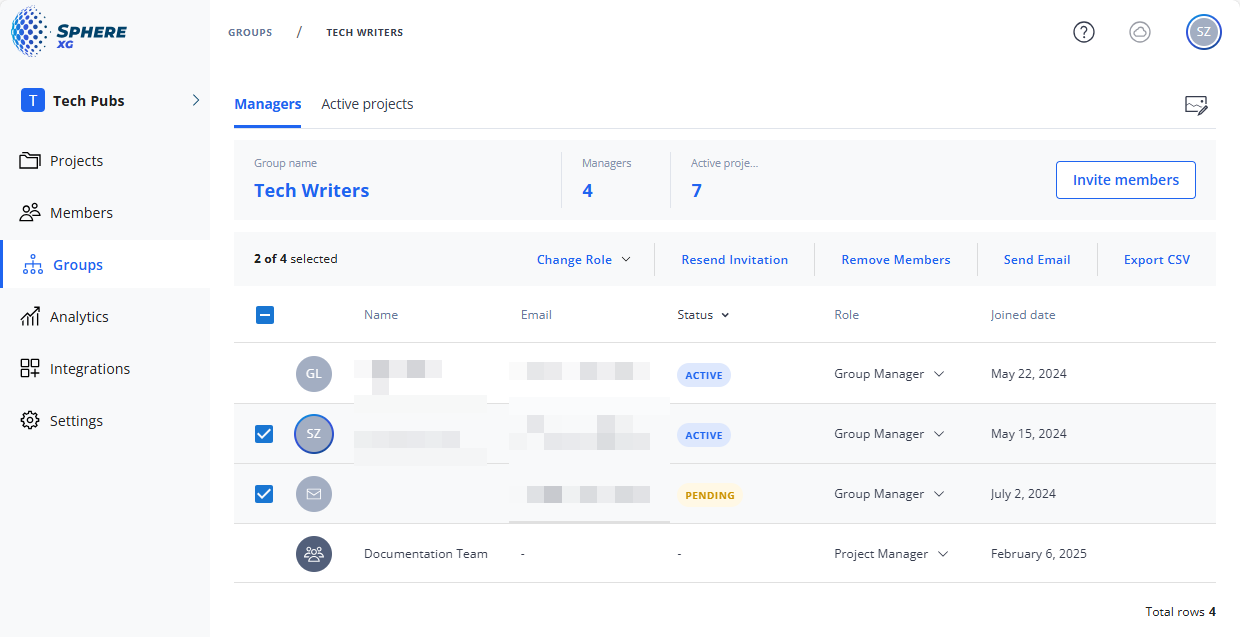 The removed members are only removed from the group, i.e. their accounts are not deleted. But if the removed members do not have access to any other group, they can no longer work on projects in Sphere XG. Make sure to assign these members to other groups.