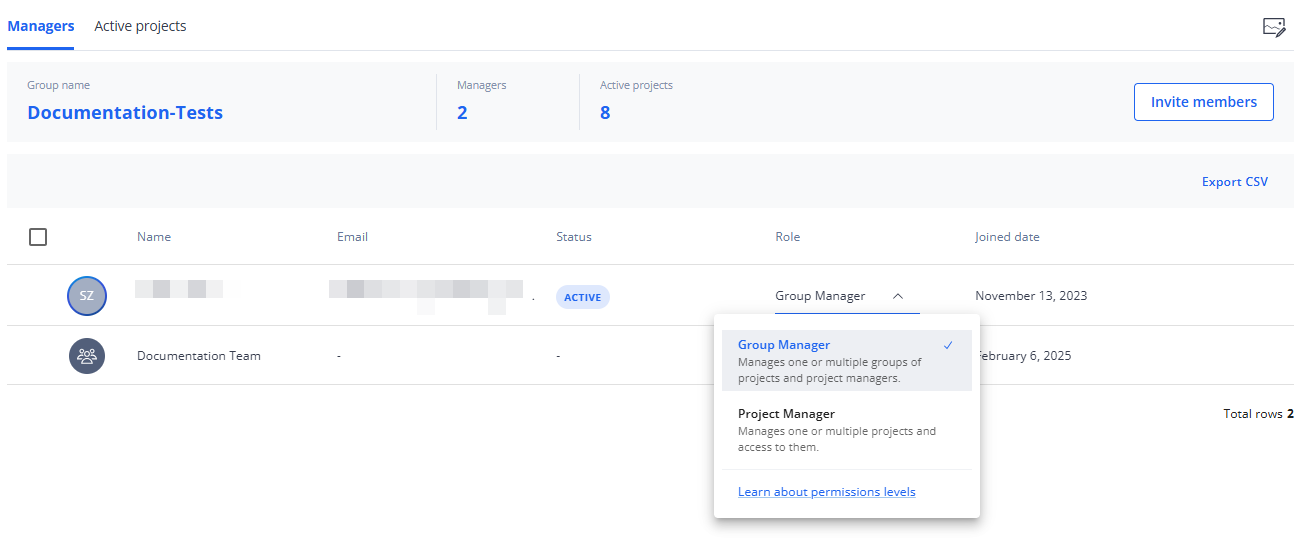 Change the Group Manager and Project Manager Role on the Groups page