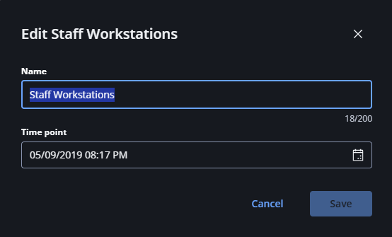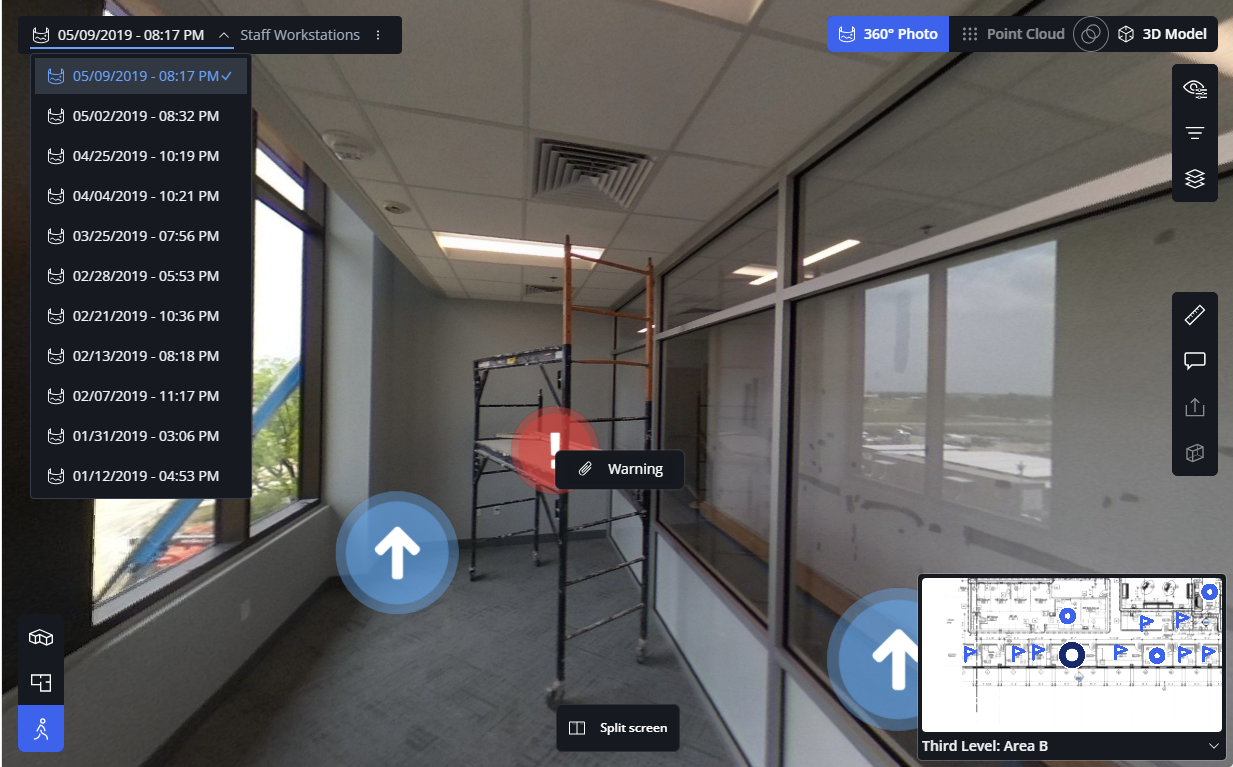 This dropdown list contains all 360° photos of one waypoint taken at different times. This feature is very useful to visualize progress in a project.