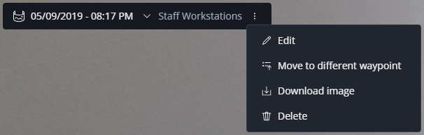 You can edit the time point of a 360° photo and you can also move a 360° photo to a different waypoint, see below.