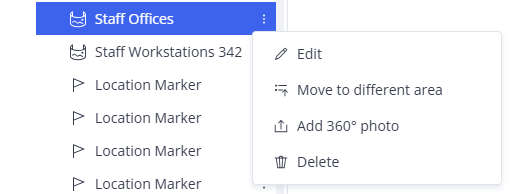 In the project structure view, click the three-dots menu of the waypoint or location marker.